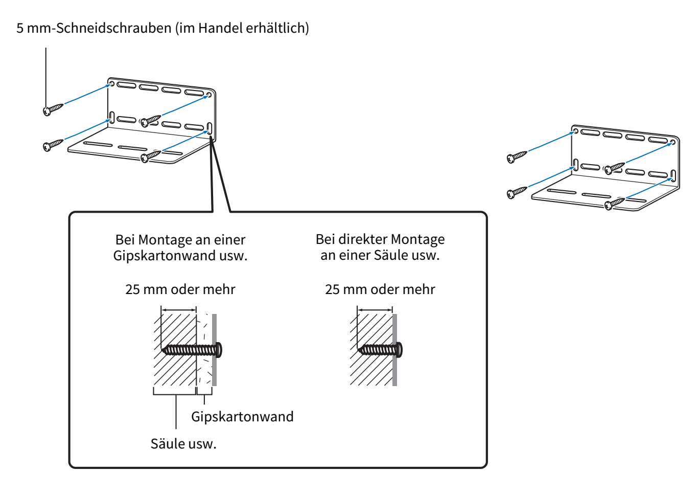 Verwenden Sie die mitgelieferten Montagehalterungen, um die Soundbar an einer Wand zu installieren.
