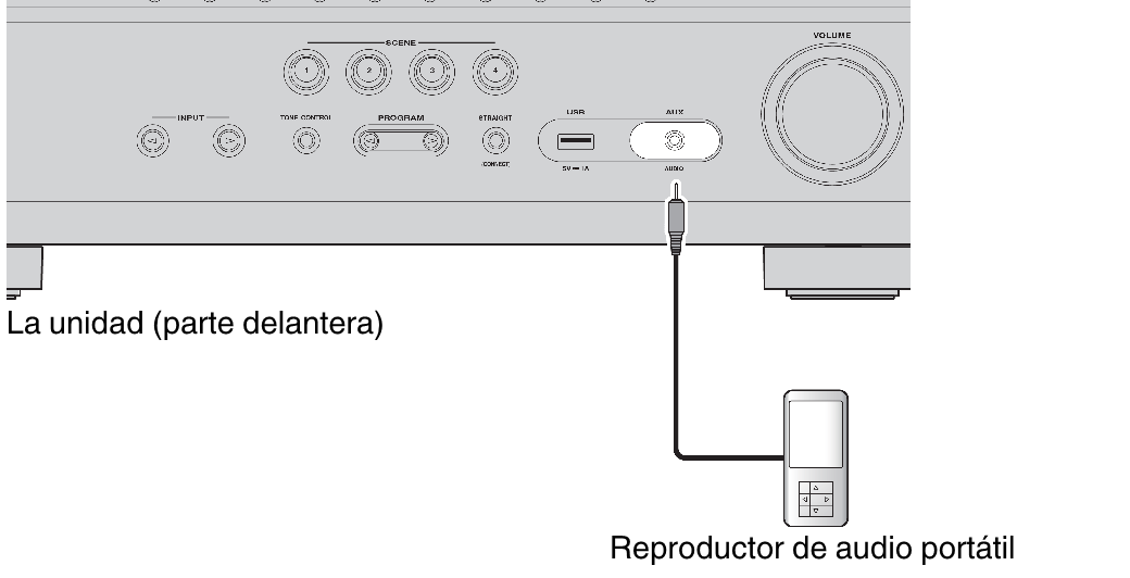Use la toma AUX del panel delantero para conectar temporalmente a la unidad dispositivos tales como reproductores de audio portátiles.