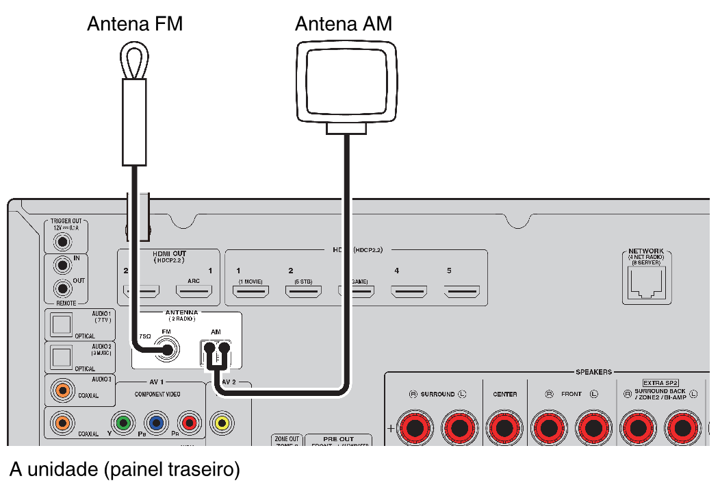 Fixe a extremidade da antena FM em uma parede, e coloque a antena AM em uma superfície plana.