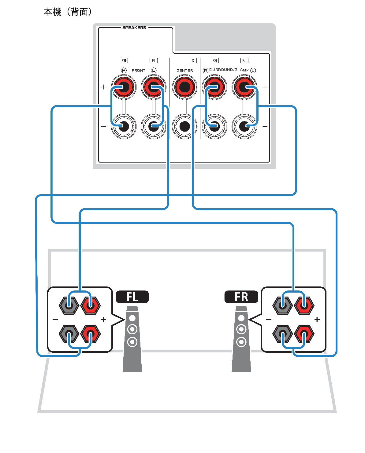 バイアンプ接続に対応したフロントスピーカーを接続します。