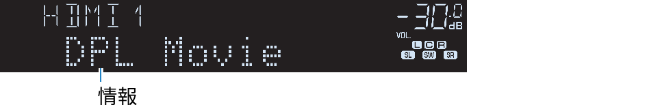HDMI | Input(入力名)、DSP Program(音場プログラム名など)、Audio Decoder(デコーダー名*) |