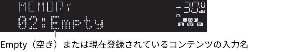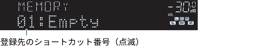- 本体前面ディスプレイに「MEMORY」が表示され、登録するショートカット番号が点滅表示されます。