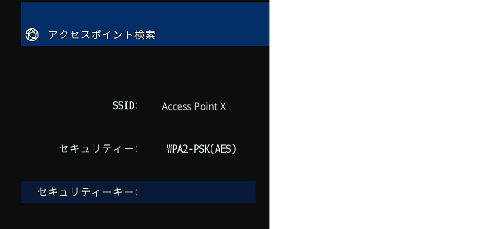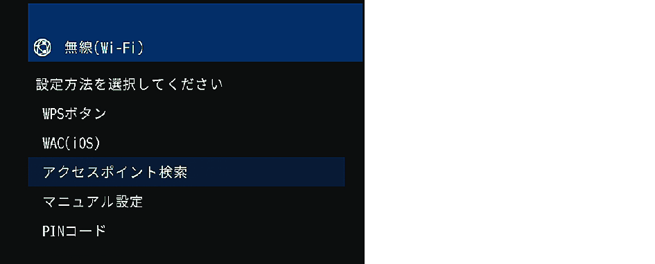 - カーソルキーで「アクセスポイント検索」を選び、ENTERキーを押す。