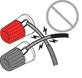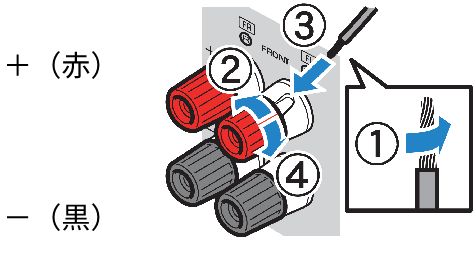 - 誤った方法でスピーカーケーブルを接続すると、スピーカーケーブルがショートし、本機やスピーカーが故障する原因となります。