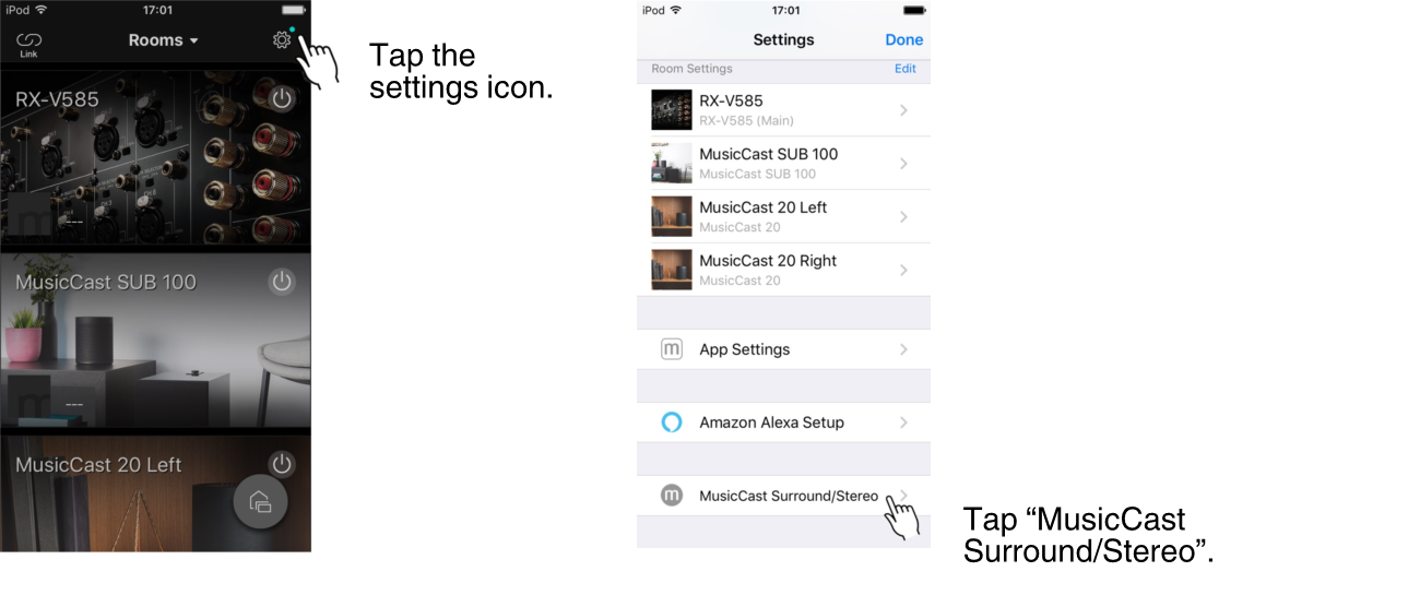 - Follow the app’s on-screen instructions to complete setup of the MusicCast Surround function.