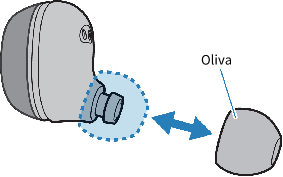 - Fije firmemente las olivas. Si no lo hace, pueden soltarse dentro de los oídos y dañarlos. Si una oliva se suelta y se queda dentro de un oído, consulte a un médico.
