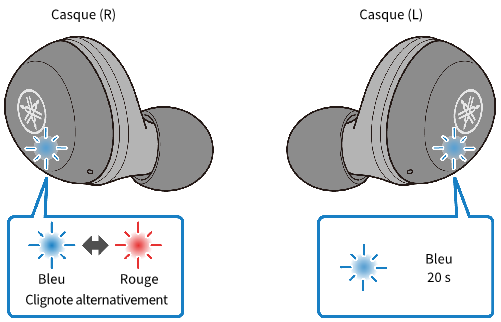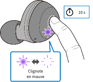 - Quand le témoin se met à clignoter, appuyez trois fois sur la touche de fonction du casque gauche (L) dans les 10 secondes suivant le début du clignotement.