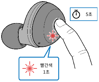 - 이어폰(왼쪽)의 기능 키를 약 10초간 길게 누릅니다.