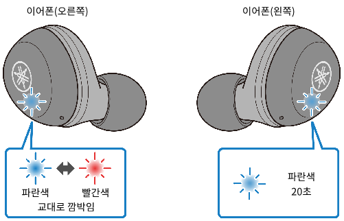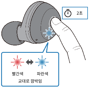 - 표시등이 깜박이기 시작하면 이어폰(오른쪽)의 기능 키를 10초 이내에 3회 누르십시오.
