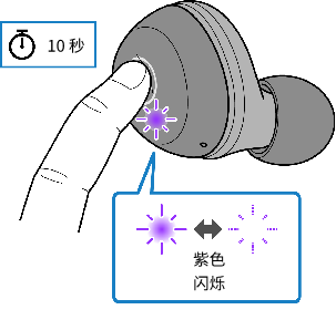 - 指示灯开始闪烁后,在 10 秒内按耳机(左)上的功能键三次。