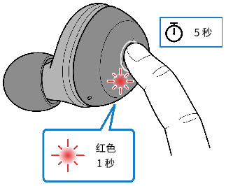 - 长按每个耳机(左、右)上的功能键,直至指示灯呈红色亮起。您将听到耳机发出“Power Off”音频消息。