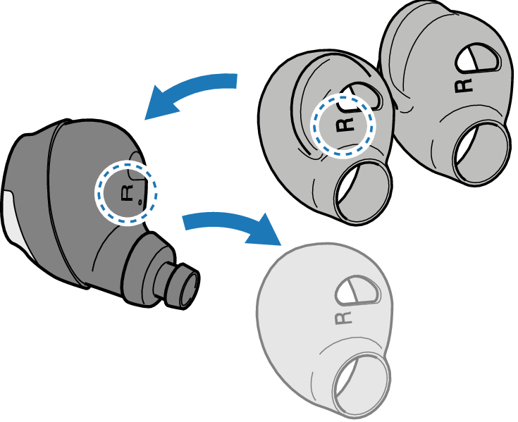 • Las almohadillas de silicona izquierda y derecha son diferentes.