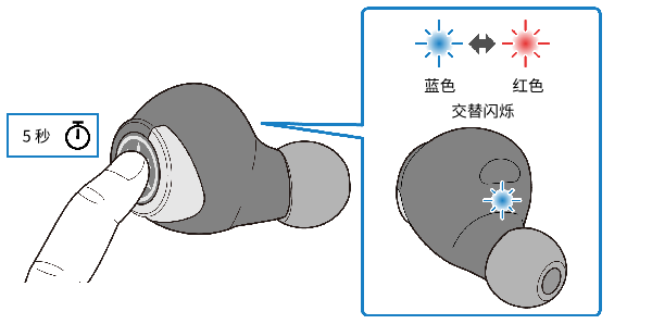 - 长按每个耳机(左、右)上的功能键,直至指示灯呈红色亮起。
