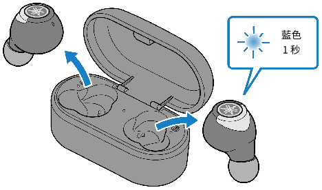 如果耳機已從充電盒取出,或從充電盒取出時沒有開啟,請按住各耳機(左、右)上的功能鍵,直到指示燈亮起藍色為止。
