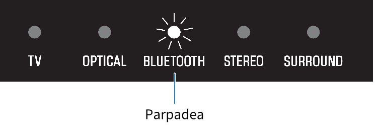 - La barra de sonido entra en un estado de espera mientras se establece la conexión y el indicador BLUETOOTH parpadea.