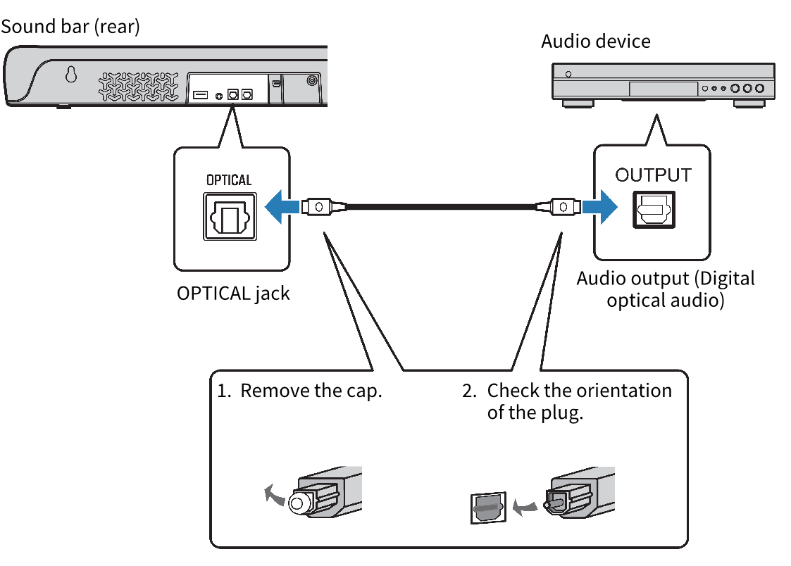 Devices equipped with audio output jacks can be connected directly to the sound bar.