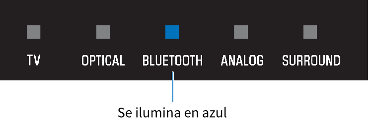 - Una vez establecida la conexión, el indicador BLUETOOTH de la barra de sonido deja de parpadear y se ilumina en azul.