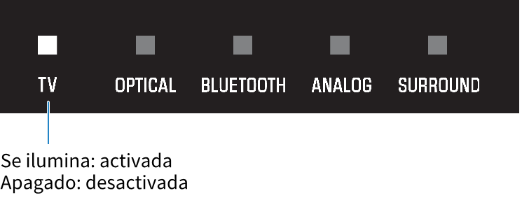 - El indicador muestra el ajuste aplicado de la siguiente forma, y la barra de sonido se enciende.