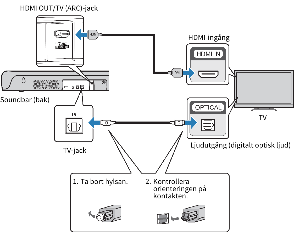 - Anslut en TV till soundbaren.