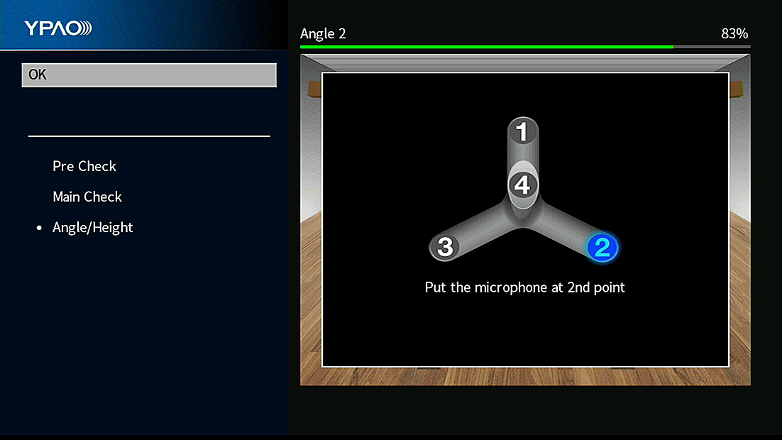 - Indstil YPAO-mikrofonen i toppen af stangen og udfør den fjerde vinkelmåling.