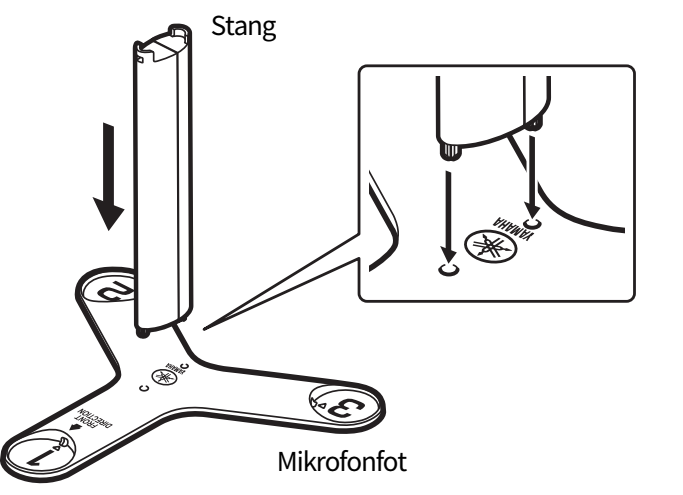 - Fest den medfølgende stangen til midten av mikrofonfoten.