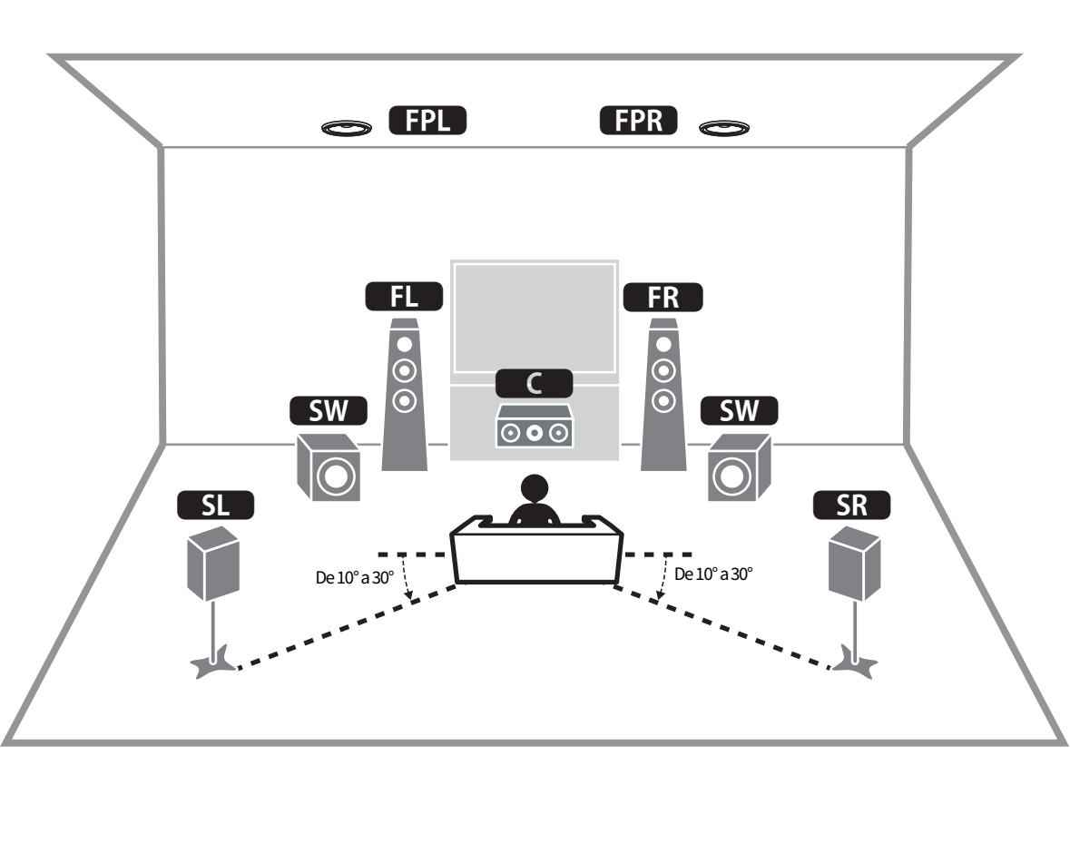 Para una disposición con altavoces de presencia delanteros en la posición superior
