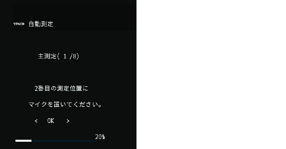 - YPAO 用マイクを次の視聴位置に移動し、「OK」を選ぶ。