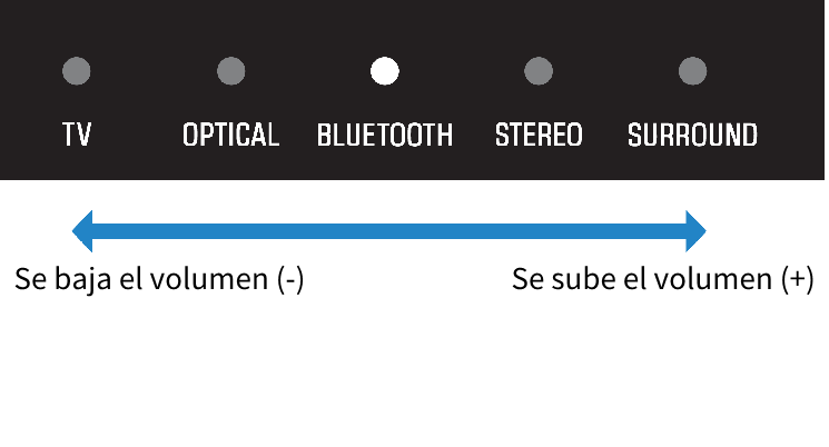 El indicador iluminado cambia para mostrar el nivel de volumen.