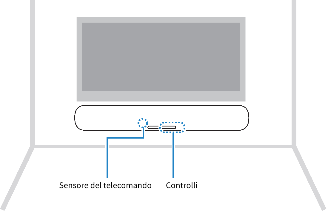 - Rimuovere la pellicola di protezione dai distanziatori (in dotazione) e applicare il lato adesivo di ciascun distanziatore sul lato inferiore della soundbar.