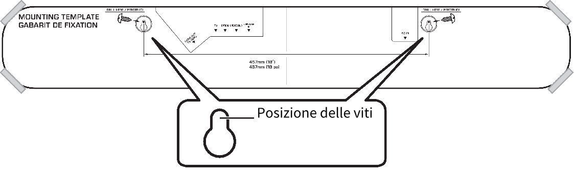 Usare i fori per le viti sulla soundbar per montare la stessa a parete.