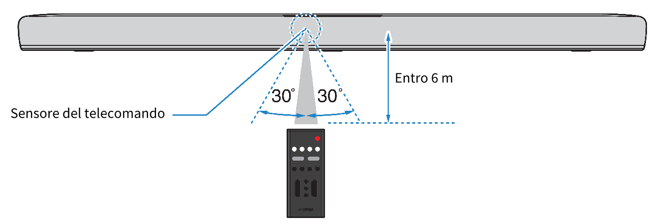 - Quando la soundbar è montata a parete, puntare il telecomando verso il sensore del telecomando sul lato superiore della soundbar.