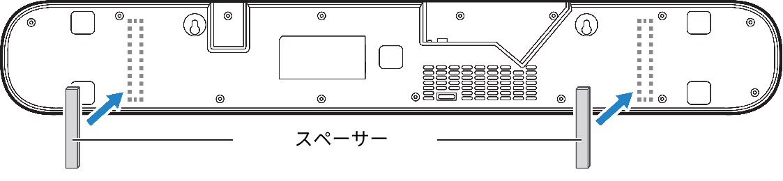 - スペーサー(付属品)のはく離紙をはがし、粘着部をサウンドバー底面に貼る。