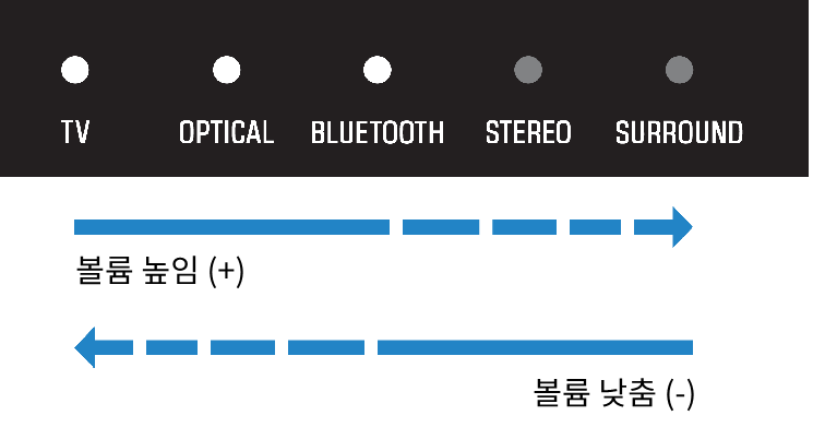 켜진 표시등의 숫자가 바뀌면서 볼륨 레벨을 표시합니다.