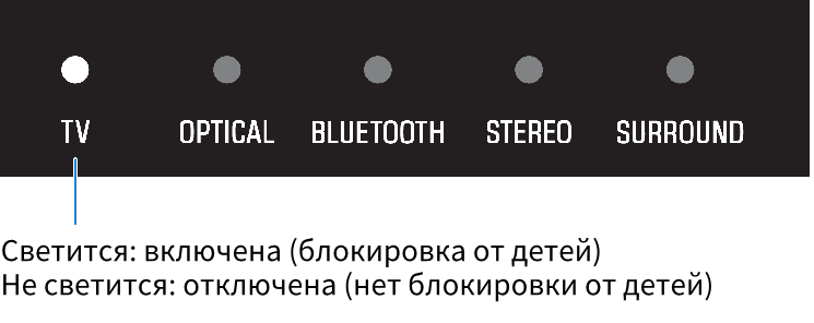Блокировка органов управления саундбара предотвращает случайное срабатывание (функция блокировки от детей).