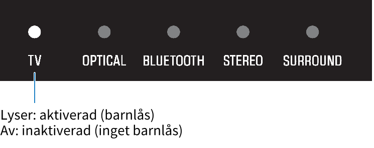 Låser kontrollerna på soundbaren för att förhindra oavsiktlig operation (barnlås-funktion).