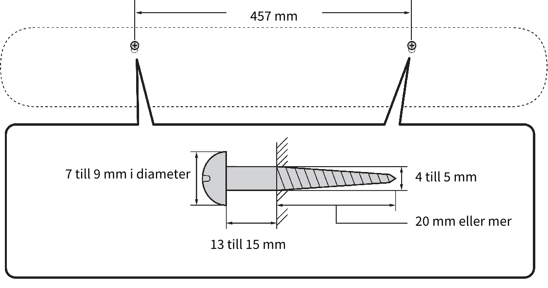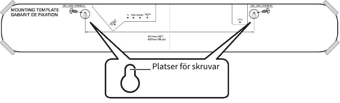 - Sätt i skruvarna (säljs separat) på platserna markerad på väggen.