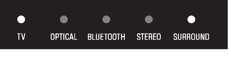 條形音箱開啟時,所有的指示燈均會亮起,然後某些指示燈會保持亮燈以顯示設定狀態(正常顯示)。