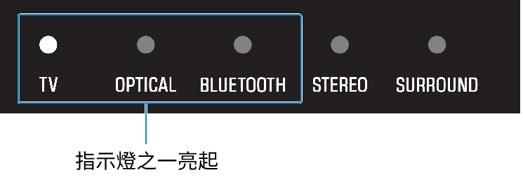 - OPTICAL 按鈕:來自連接到 OPTICAL 輸入插孔的裝置的音訊