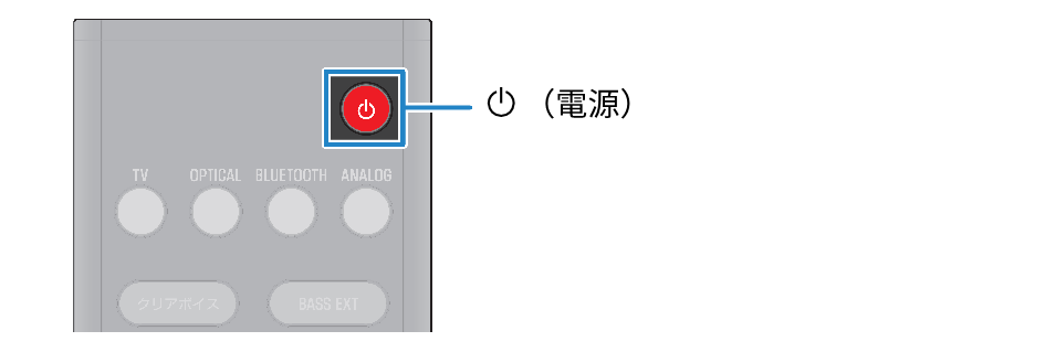 サウンドバーの電源をオン/オフします。