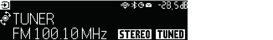 - “TUNER” is selected as the input source and the frequency currently selected is displayed on the front display.