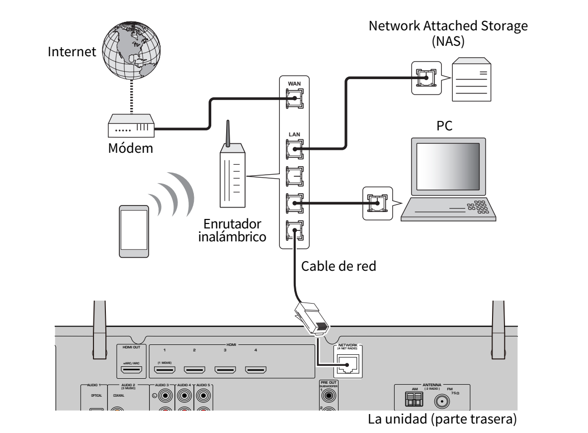 Cuando utilice un enrutador compatible con DHCP, no tendrá que configurar ningún ajuste de red en la unidad.