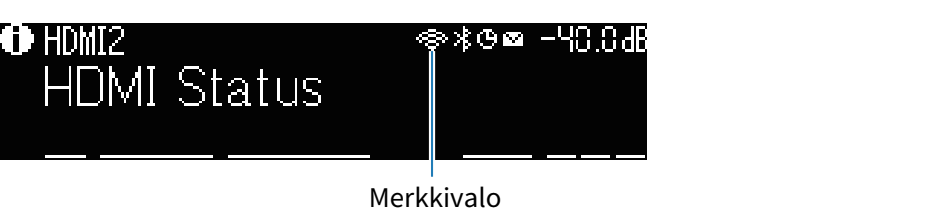 - Kun lisäät laitteen MusicCast-verkkoon, etunäytön langaton LAN-merkkivalo palaa joskus, vaikka käytettäisiin langallista yhteyttä.