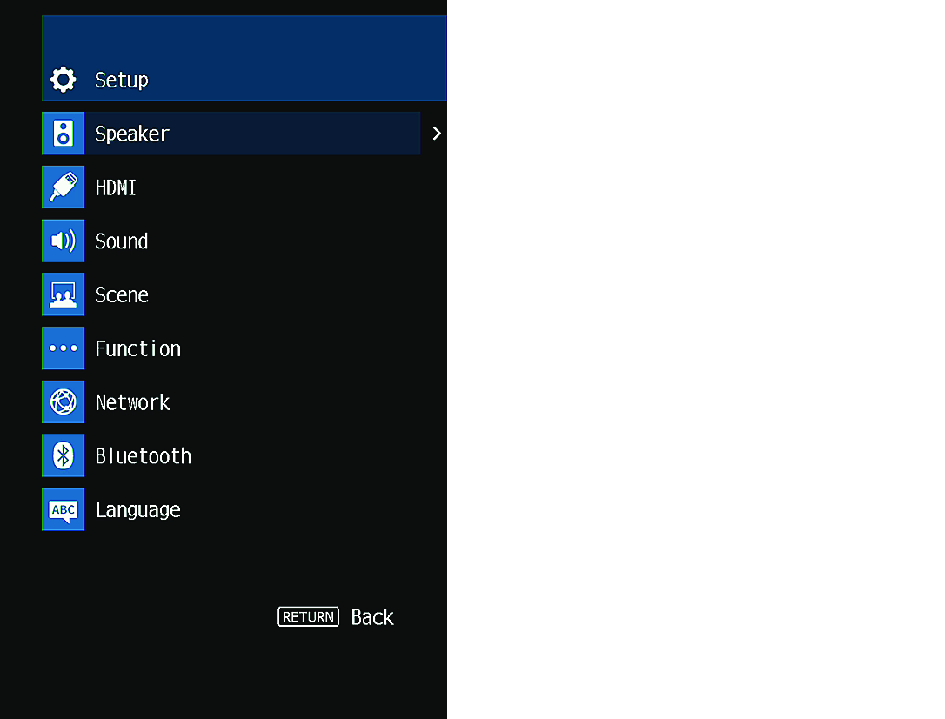 Utför följande grundläggande förfarande för att hantera ”Setup”-menyn. Manövrerar denna meny som visas på TV:n med fjärrkontrollen.
