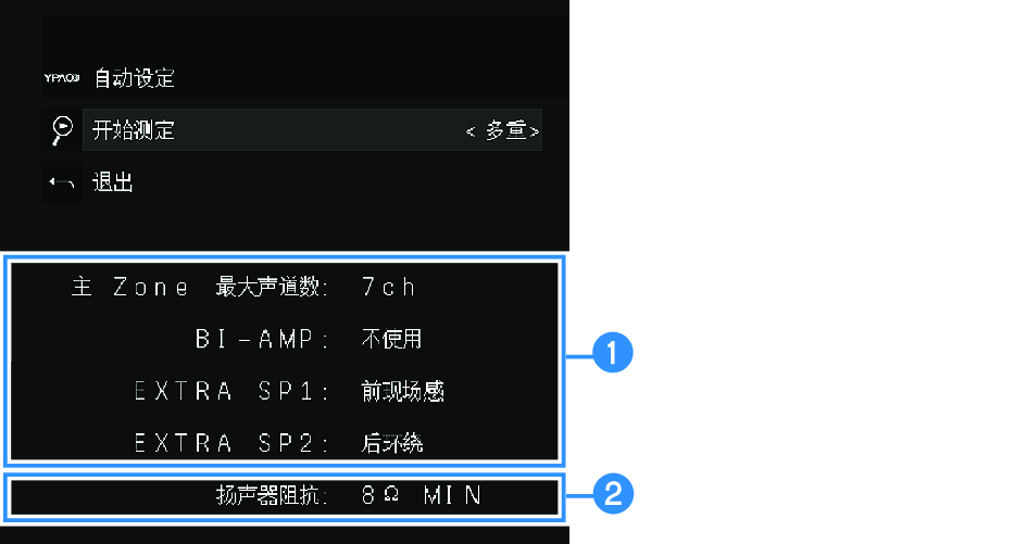 b | “扬声器阻抗”的设置(“设定” 菜单) |