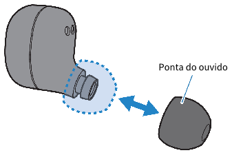 Ao usar pontas de ouvido diferentes, selecione o tamanho que corresponde às suas orelhas. Ao colocar os fones de ouvido, use as pontas dos fones que mantêm os sons do ambiente o máximo possível enquanto a música está parada.