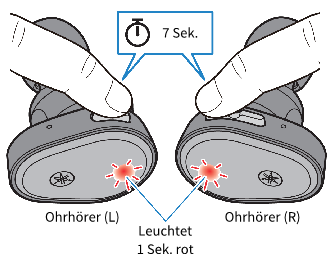 Auf diese Weise werden die Ohrhörer auf alle werkseitigen Einstellungen zurückgesetzt. Die Informationen für angemeldete (gepairte) Geräte werden gelöscht.