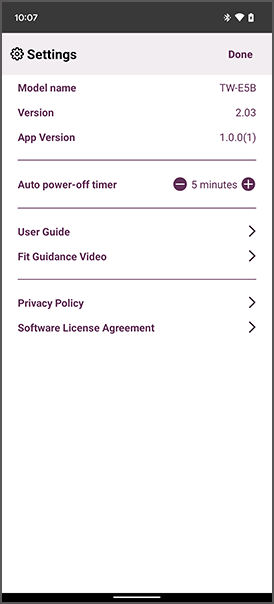 - Détermine le délai avant la mise hors tension une fois que la connexion Bluetooth est rompue.