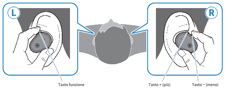 - In caso di collegamento a un dispositivo (p.es. smartphone) dove è possibile regolare il volume, è possibile utilizzare questo dispositivo per regolare il volume degli auricolari.