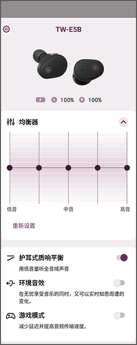 - 启用 护耳式质响平衡 后,本产品会根据播放音量自动调整音质。此功能可调整频率平衡,即使在低音量时也能实现丰富的声质播放。