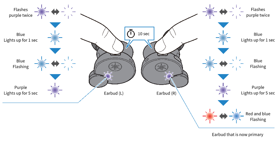 This will restore all of the earbud settings to their factory defaults. The information for devices registered (paired) will be deleted.